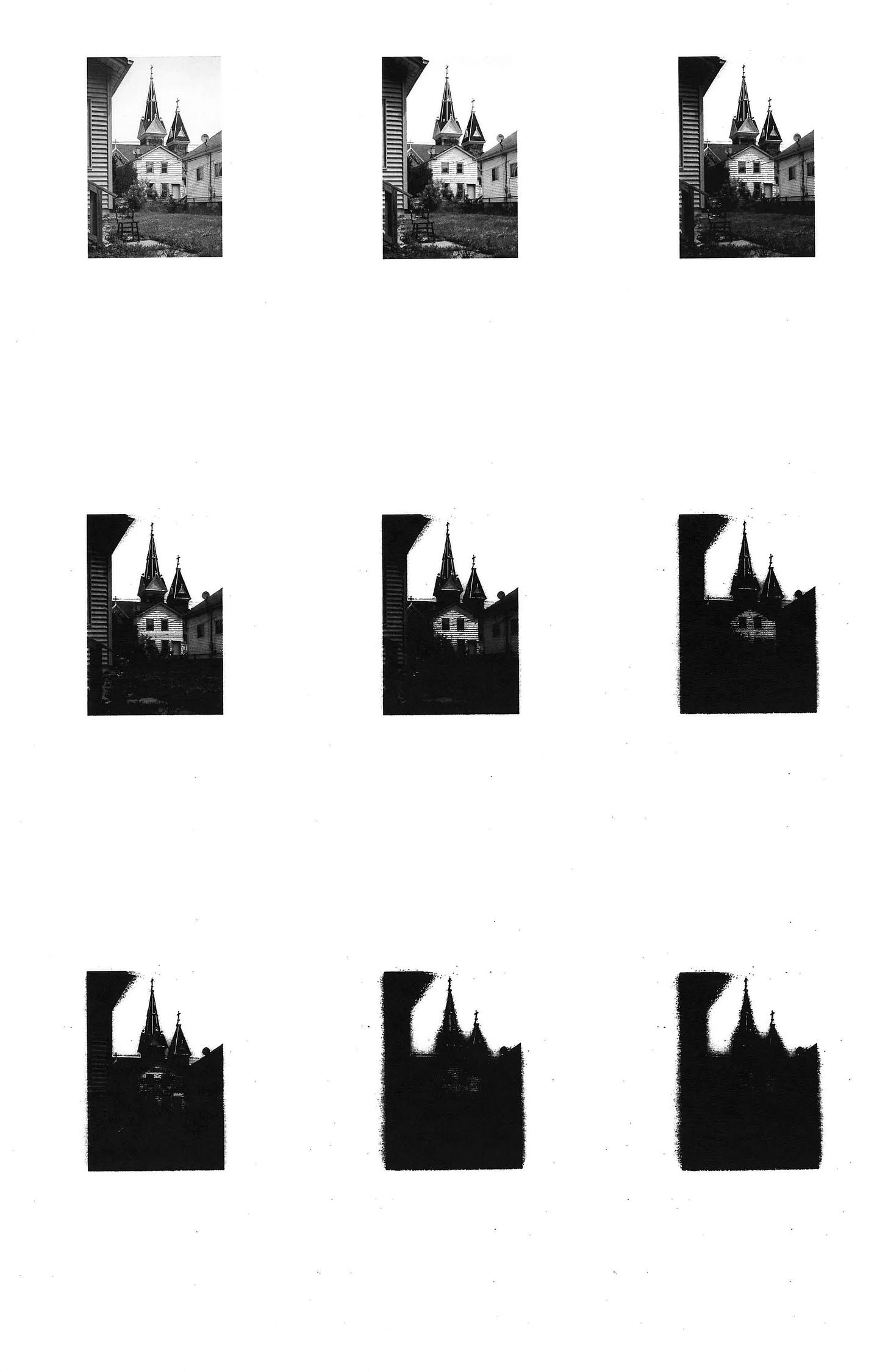 The project consists of an original digital photo that was printed then xeroxed. Each xeroxed copy was then printed again to add a layer of distortion. This process was repeated until the details of the image became obsolete. There is power in this process and what’s left over is for the viewer to interpret.