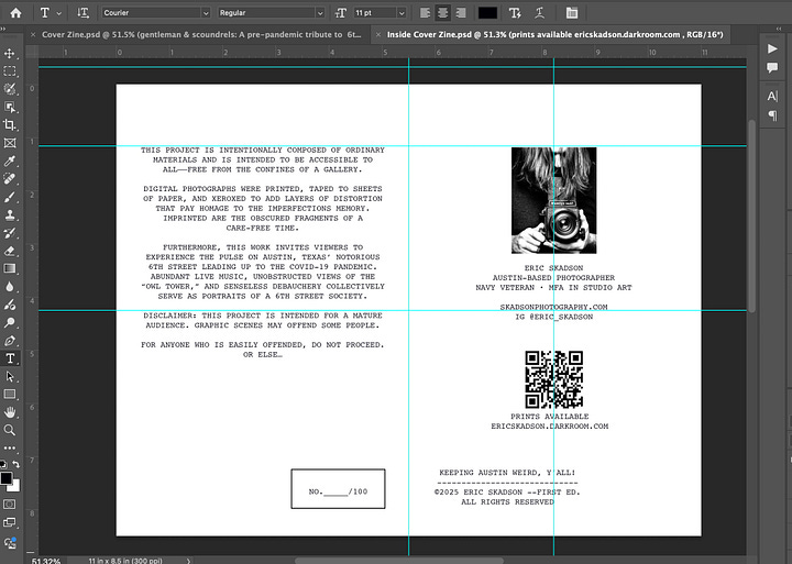 Unfortunately, this project ended from a matter of circumstance, not choice. A lot of things changed in 2020, and I simply moved on (I also relocated to Milwaukee and worked toward an MFA). It is reassuring now to circle back to this project, especially with the perspective I have gained since. I will be re-locating back to Austin at the end of the month and look forward to passing out a copies of these zines on 6th street, too!